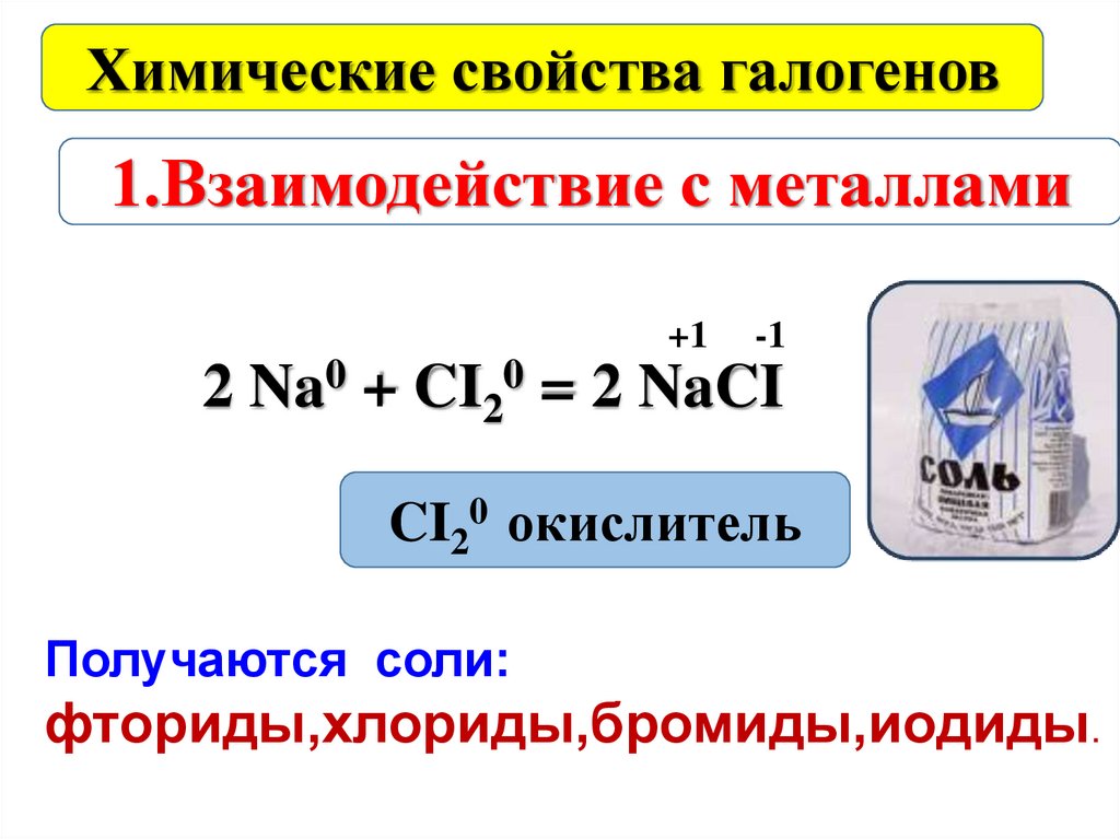 Химические свойства галогенов1.Взаимодействие с металлами