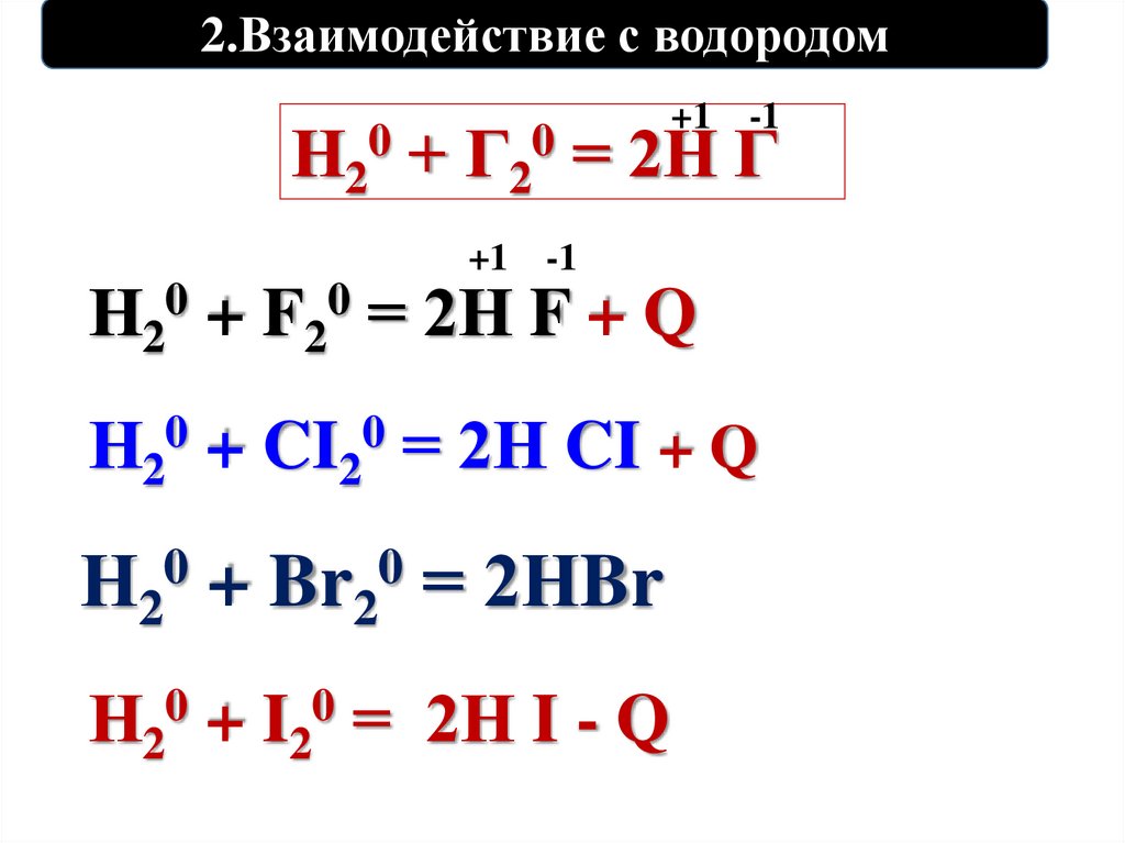 2.Взаимодействие с водородом+1 -1