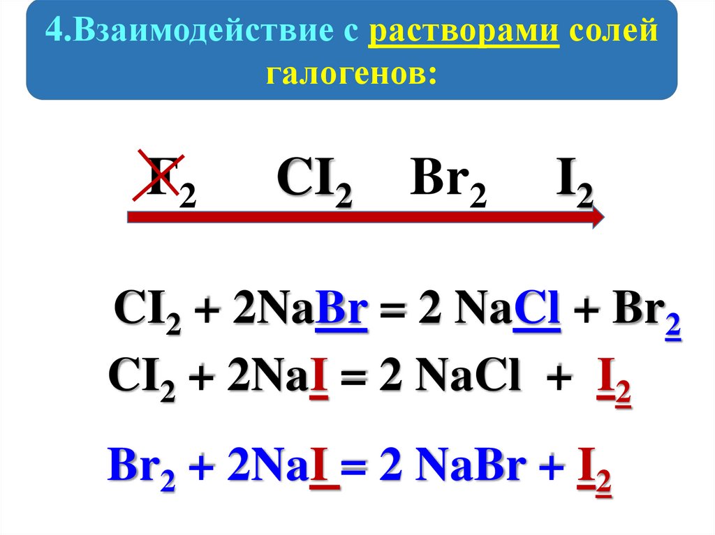 CI2 + 2NaBr = 2 NaCl + Br2