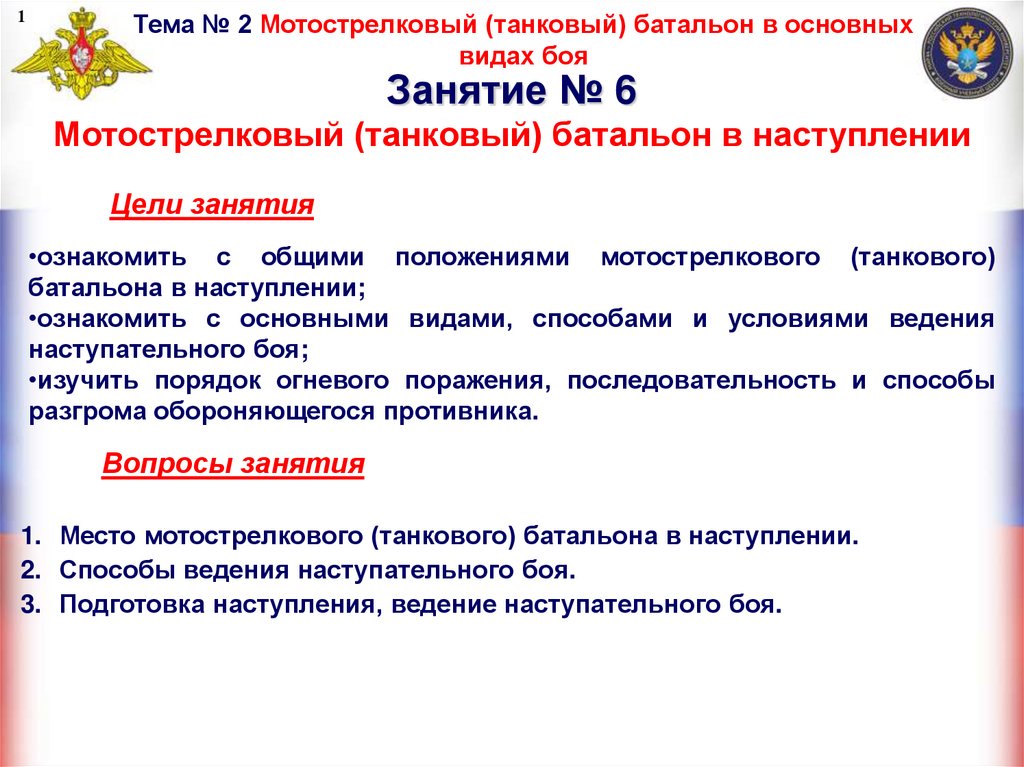 1Тема № 2 Мотострелковый (танковый) батальон в основных