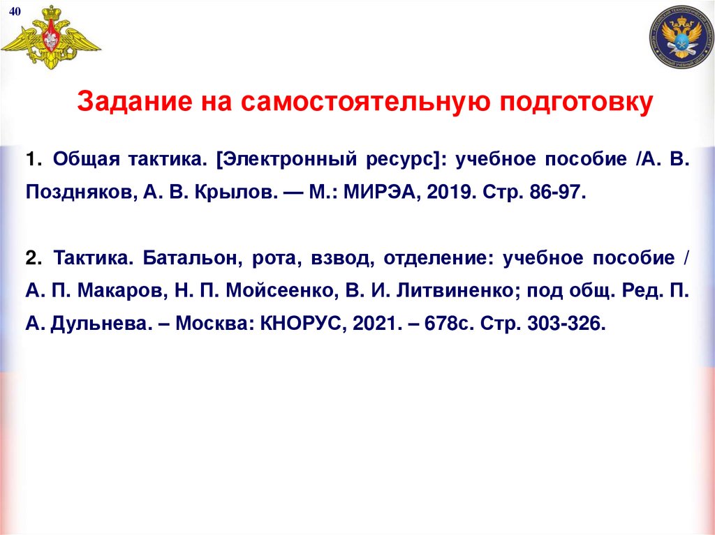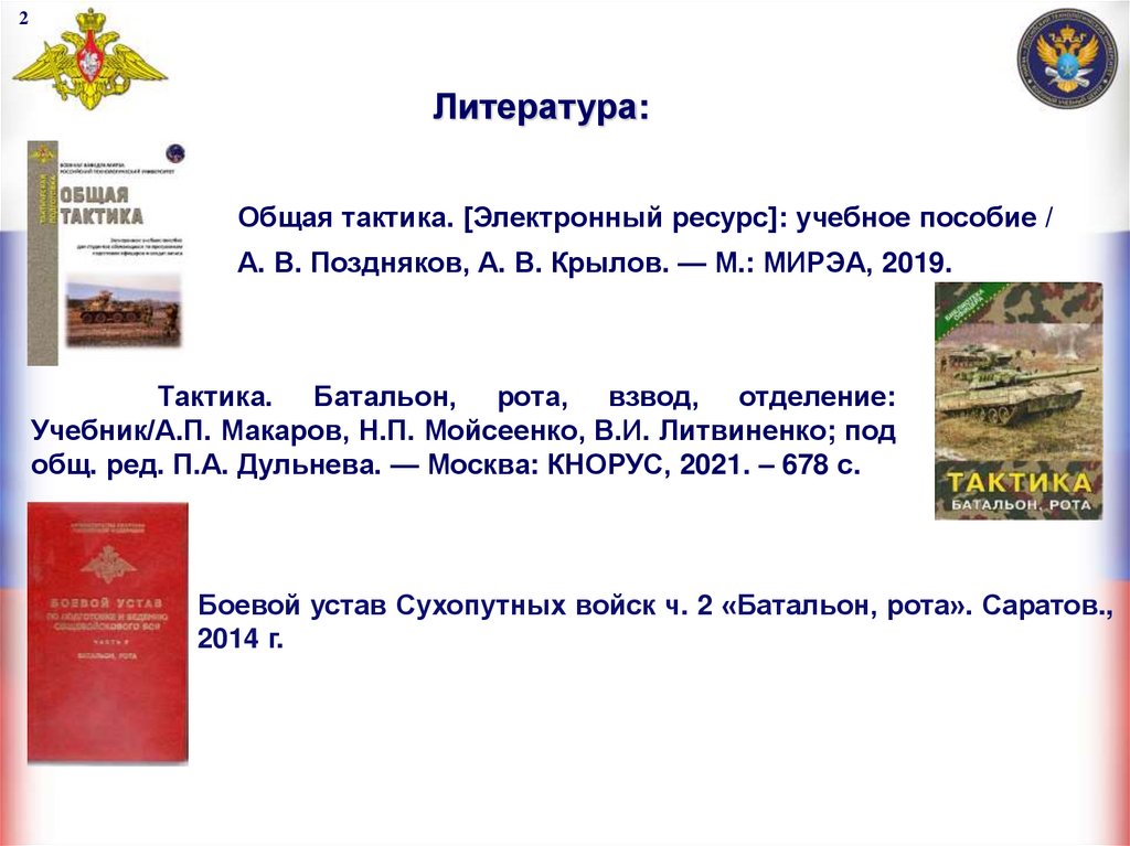 2. Тактика. Батальон, рота, взвод, отделение: учебное пособие /