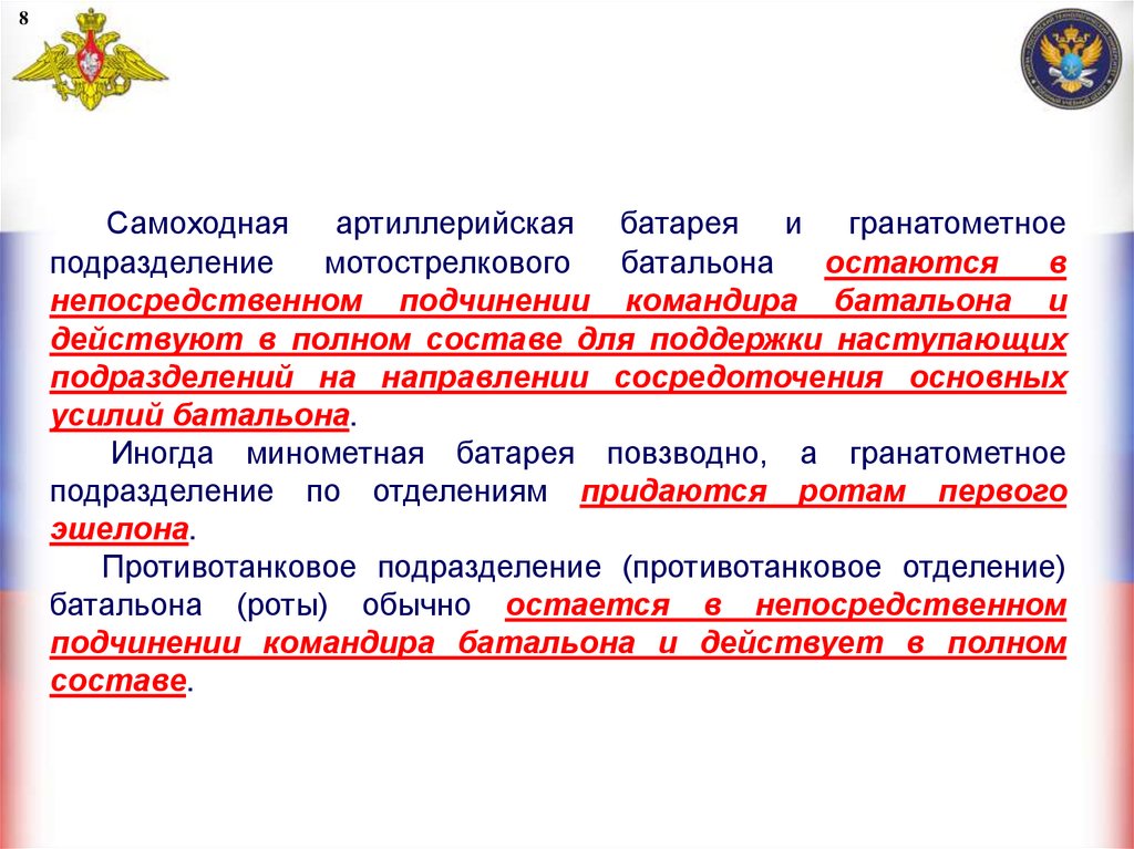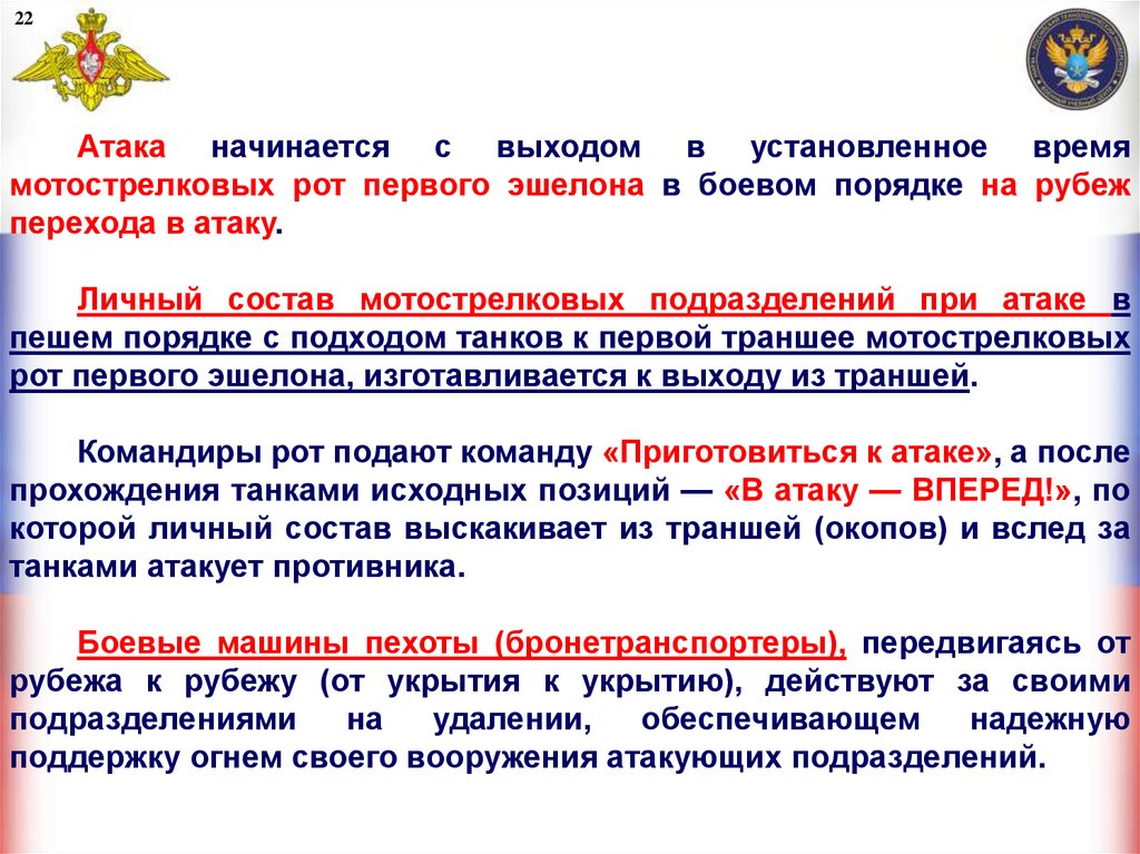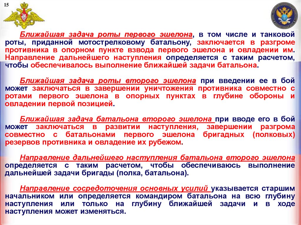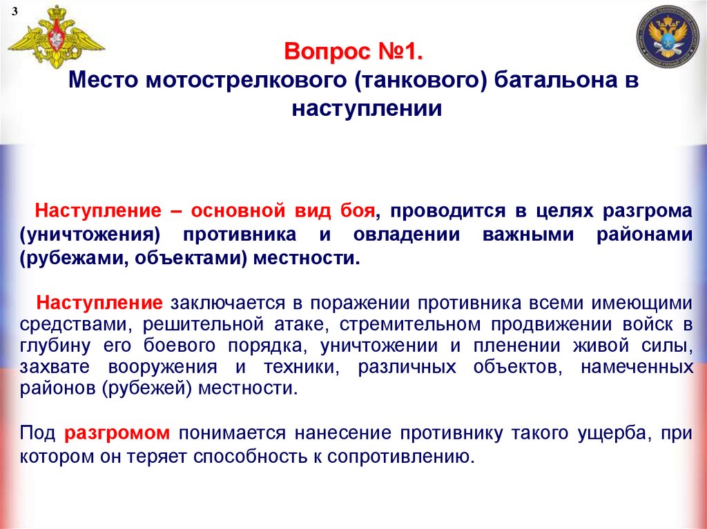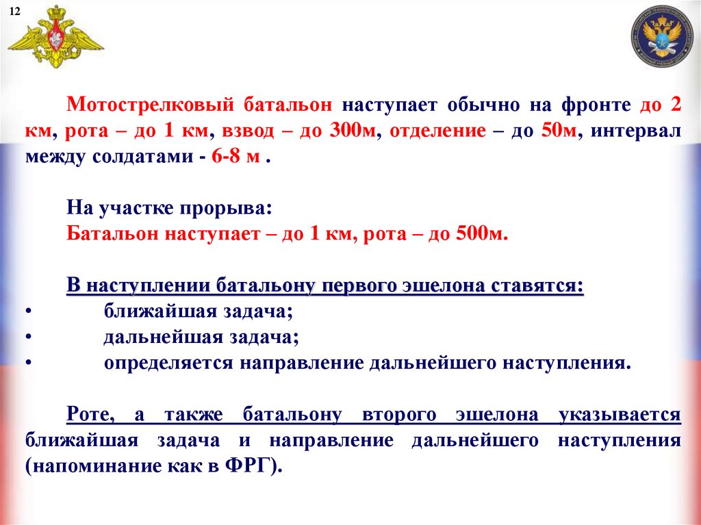 1. Место мотострелкового (танкового) батальона в наступлении.