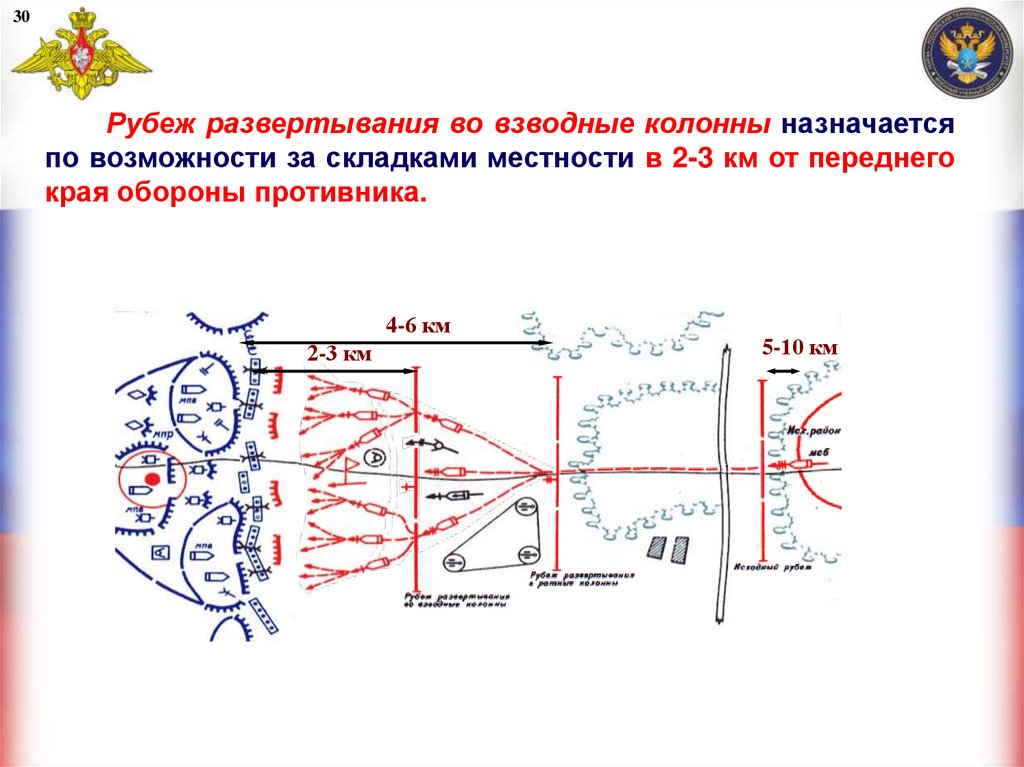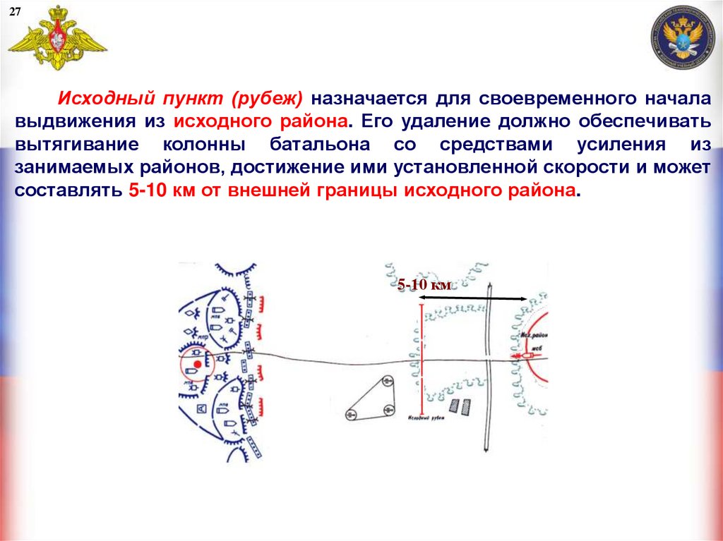 - подготовку маршрута выдвижения и рубежей развертывания;