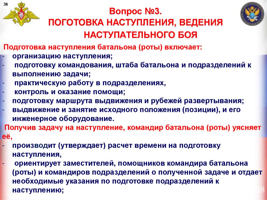 ПОГОТОВКА НАСТУПЛЕНИЯ, ВЕДЕНИЯ