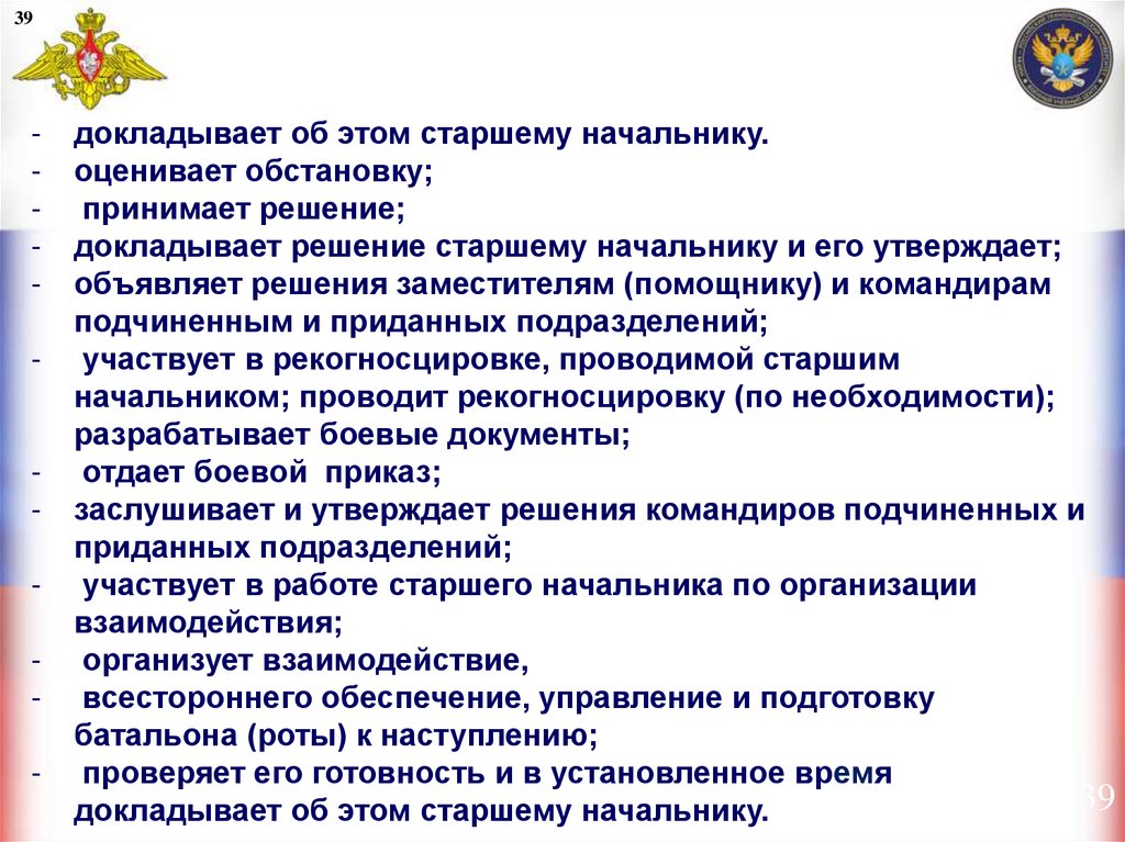 Получив задачу на наступление, командир батальона (роты) уясняет