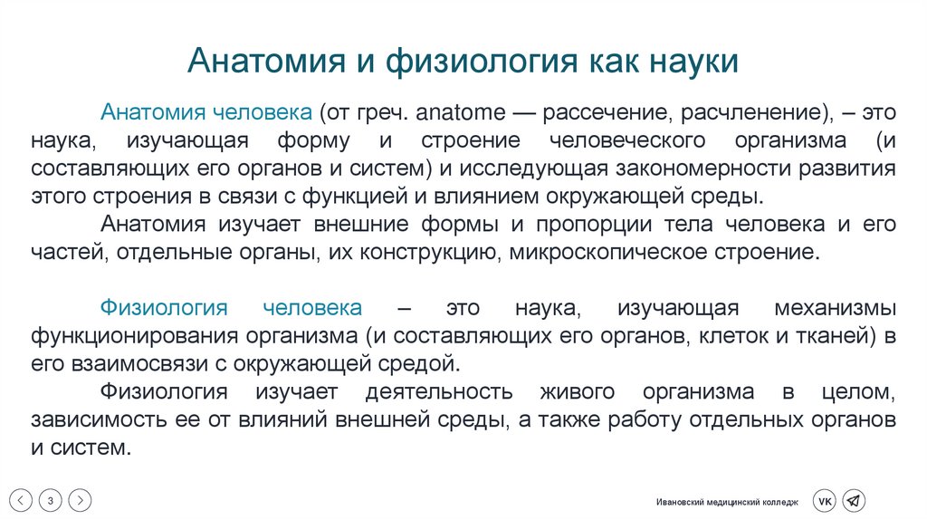 Анатомия и физиология как наукиАнатомия человека (от греч. anatome — рассечение, расчленение), – это