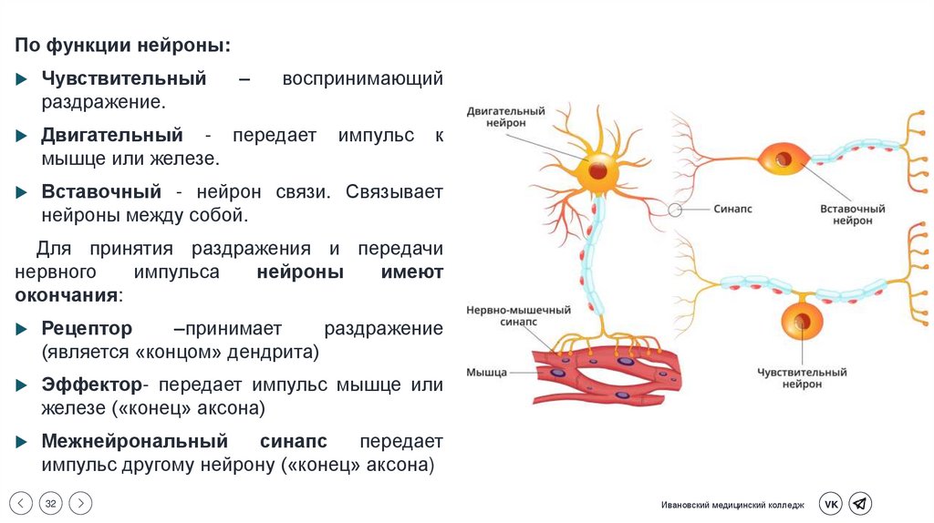 нервный импульс и передает его другой клетке или рабочему органу (мышце или