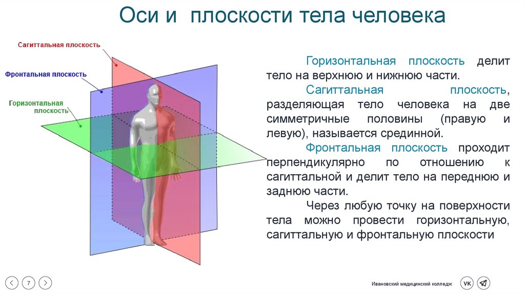 Оси и плоскости тела человекаГоризонтальная плоскость делит