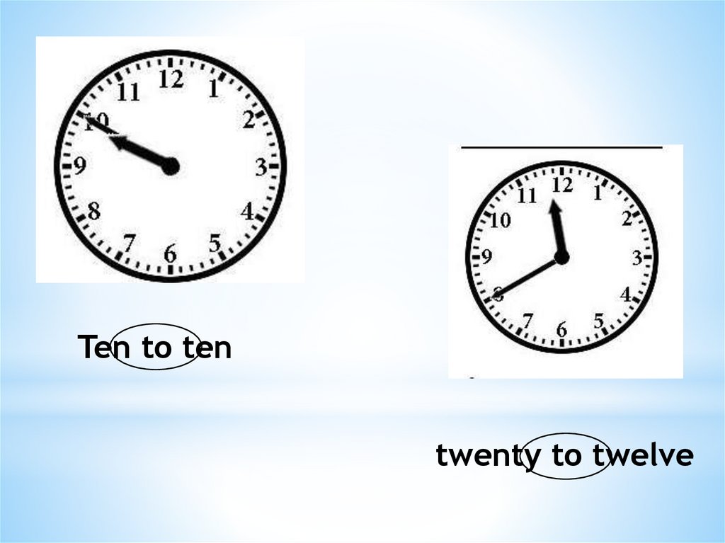 to(до) – используется для обозначения части часа от 31 до 59 мин