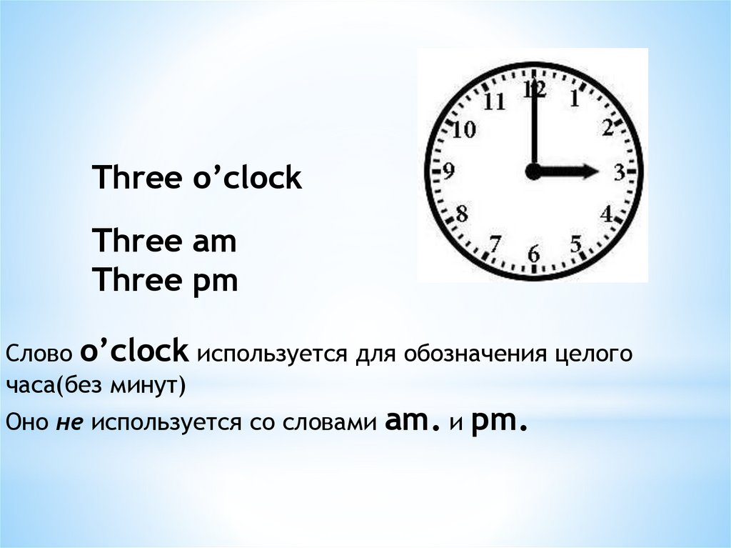 Слово o’clock используется для обозначения целого