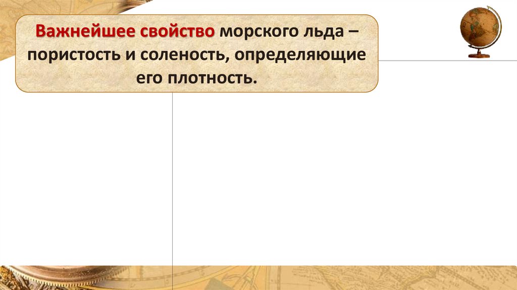 Важнейшее свойство морского льда –пористость и соленость, определяющие