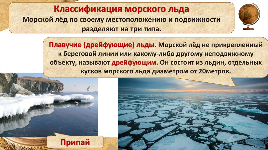 Классификация морского льдаМорской лёд по своему местоположению и подвижности