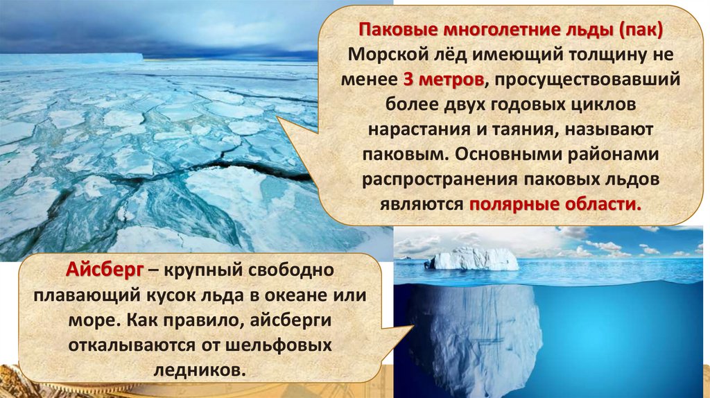 Паковые многолетние льды (пак)Морской лёд имеющий толщину не