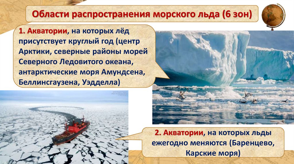 Области распространения морского льда (6 зон)1. Акватории, на которых лёд