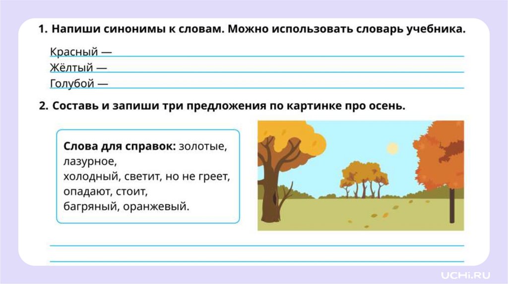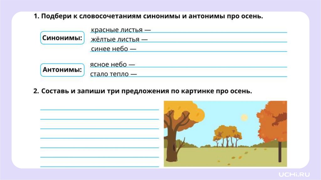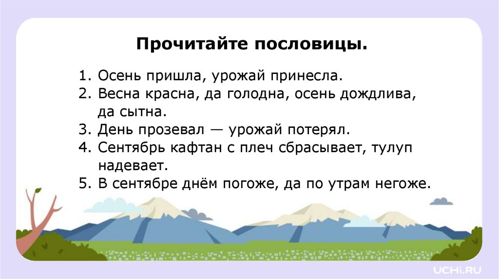 Прочитайте пословицы.1. Осень пришла, урожай принесла.