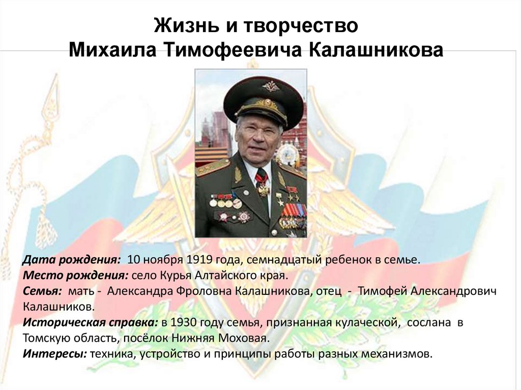 Жизнь и творчествоМихаила Тимофеевича Калашникова