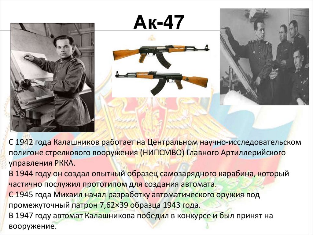В 1947 году автомат Калашникова победил в конкурсе и был принят на