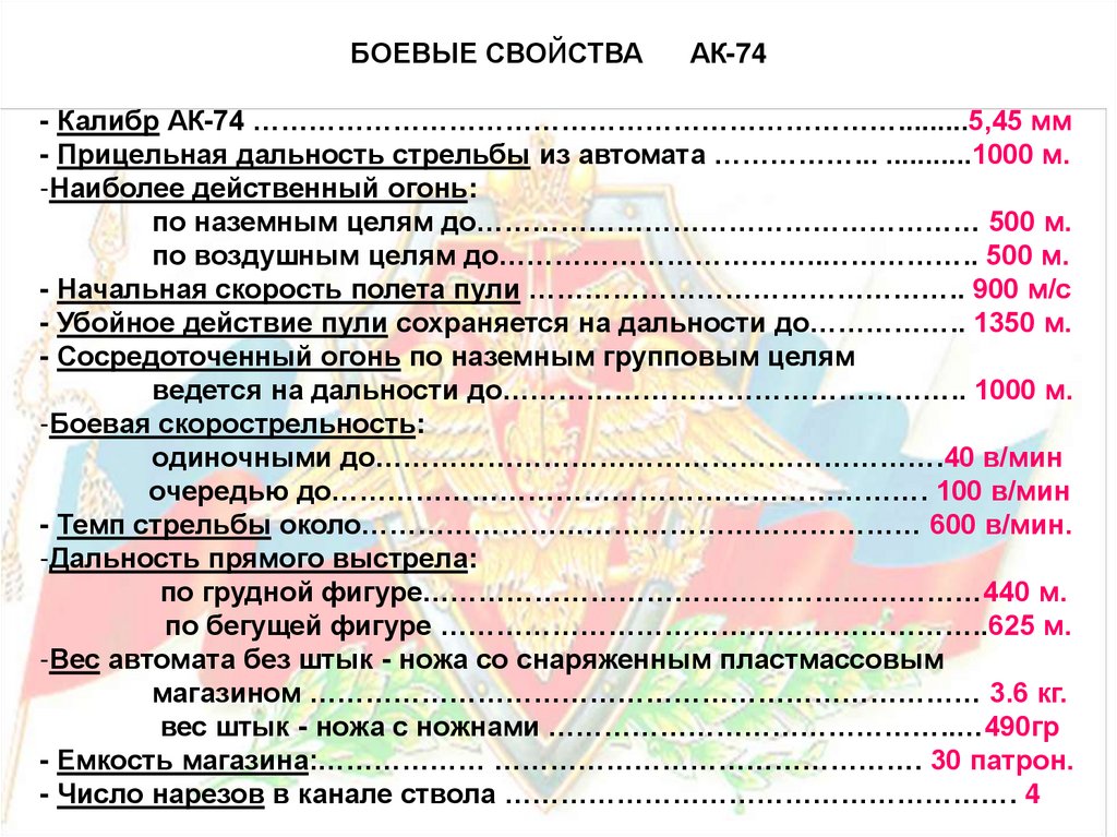 - Прицельная дальность стрельбы из автомата ……………... ...........1000 м.