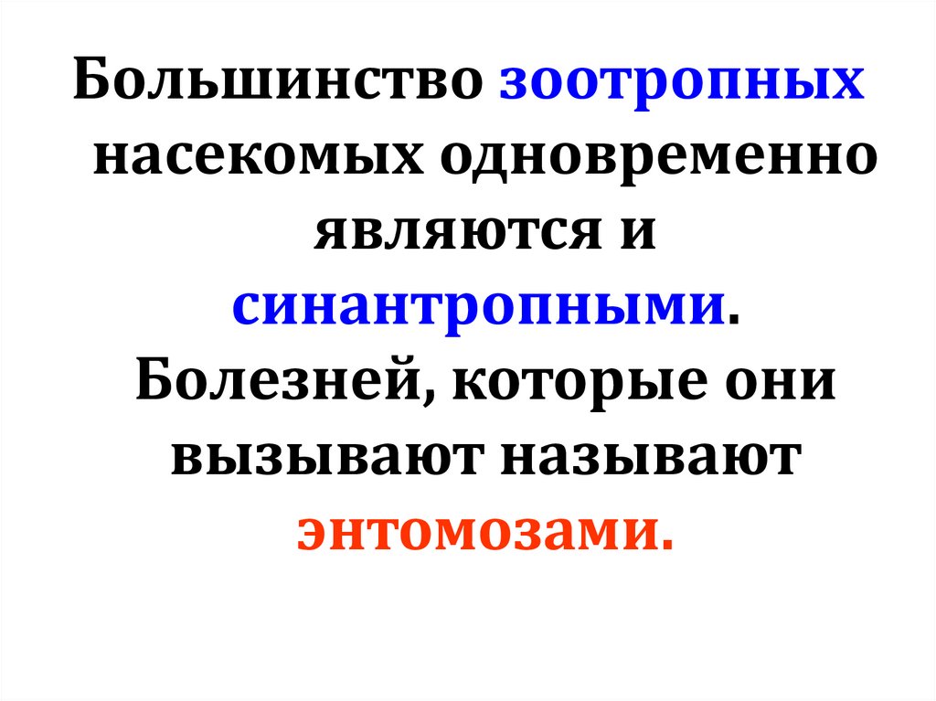 8. Насекомых, жизнь которых тесно связана с теплокровными животными, называют зоотропными, а с людьми – синантропными.
