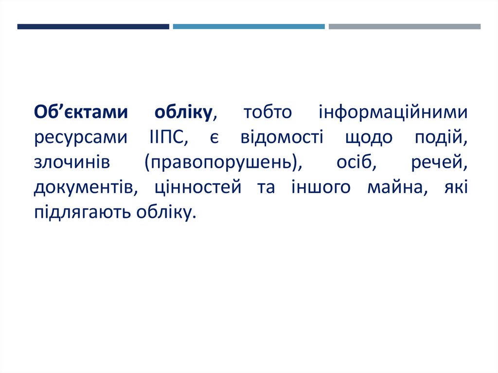 Об’єктами обліку, тобто інформаційнимиресурсами ІІПС, є відомості щодо подій,