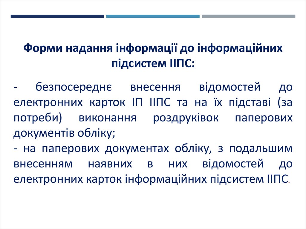 Форми надання інформації до інформаційнихпідсистем ІІПС: