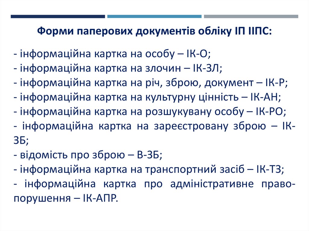 - інформаційна картка на злочин – ІК-ЗЛ;