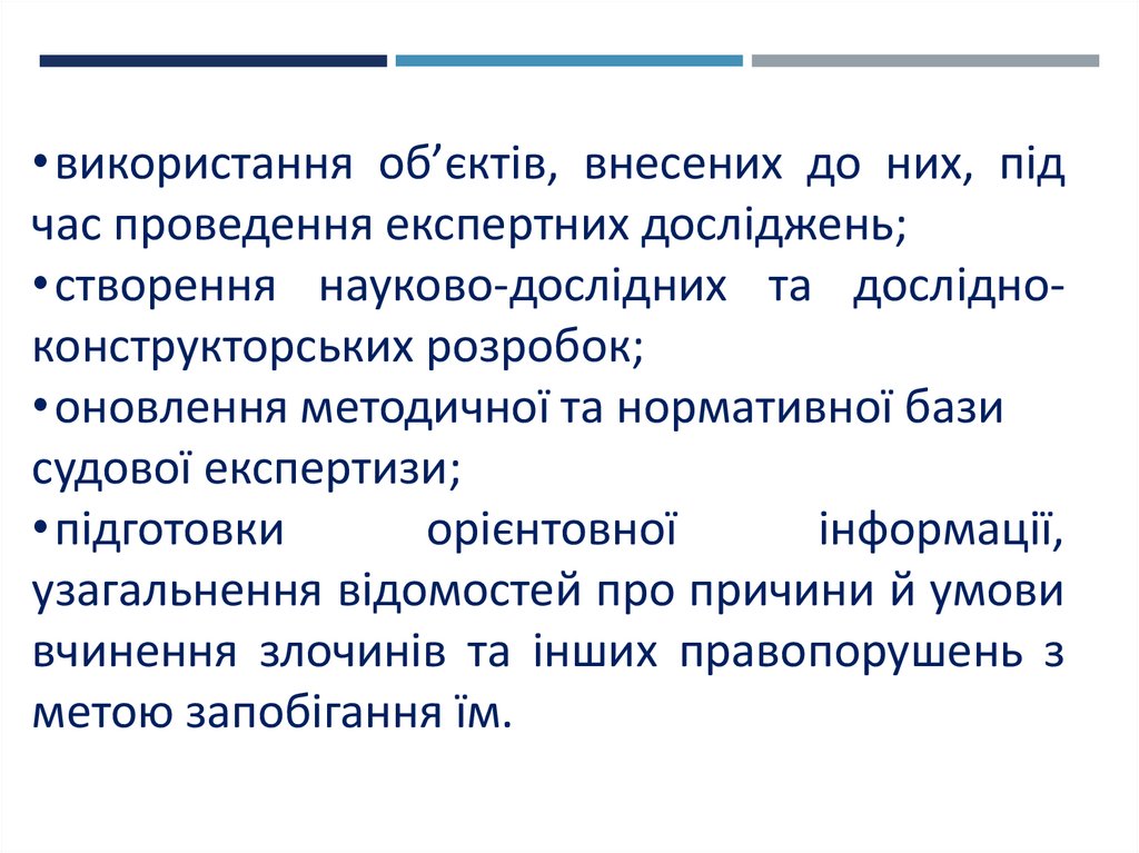 •використання об’єктів, внесених до них, підчас проведення експертних досліджень;