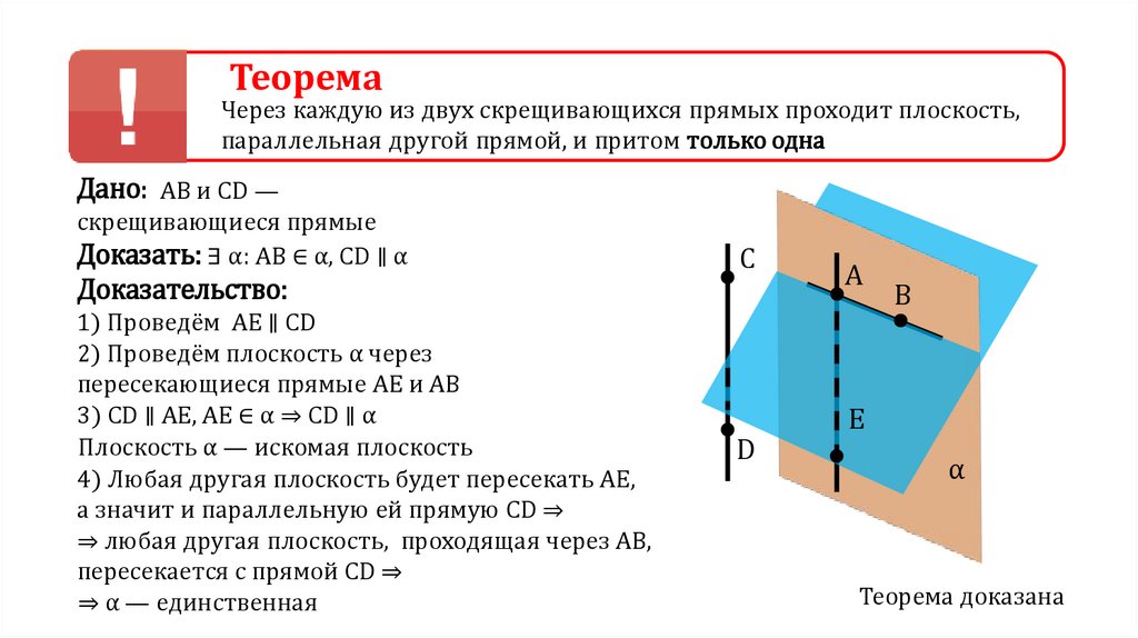 Доказать: ∃ α: AB ∈ α, CD ∥ α