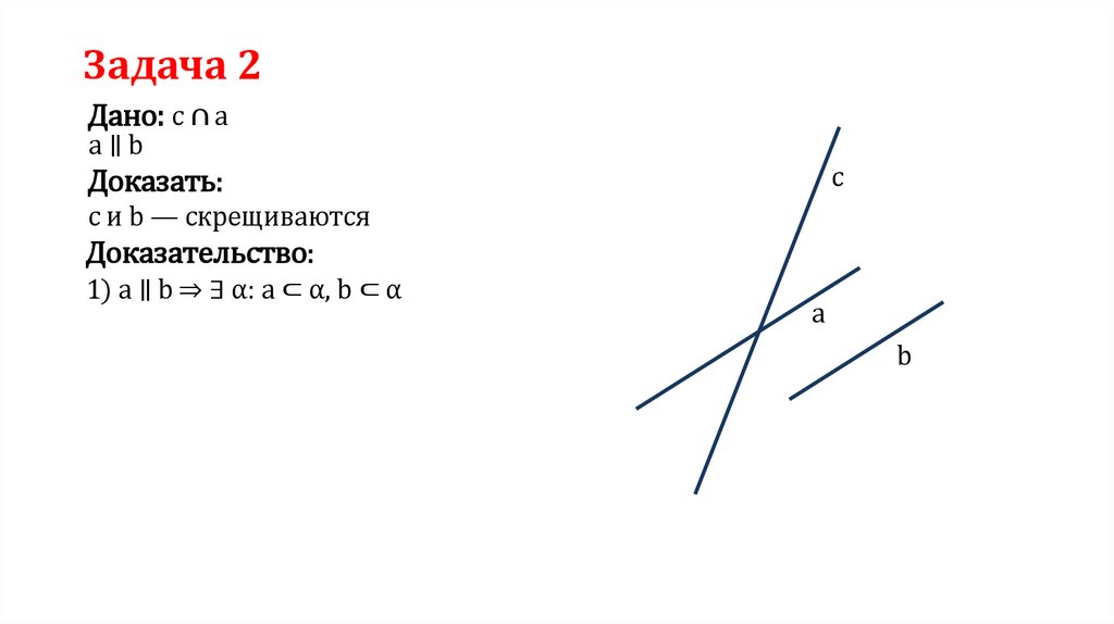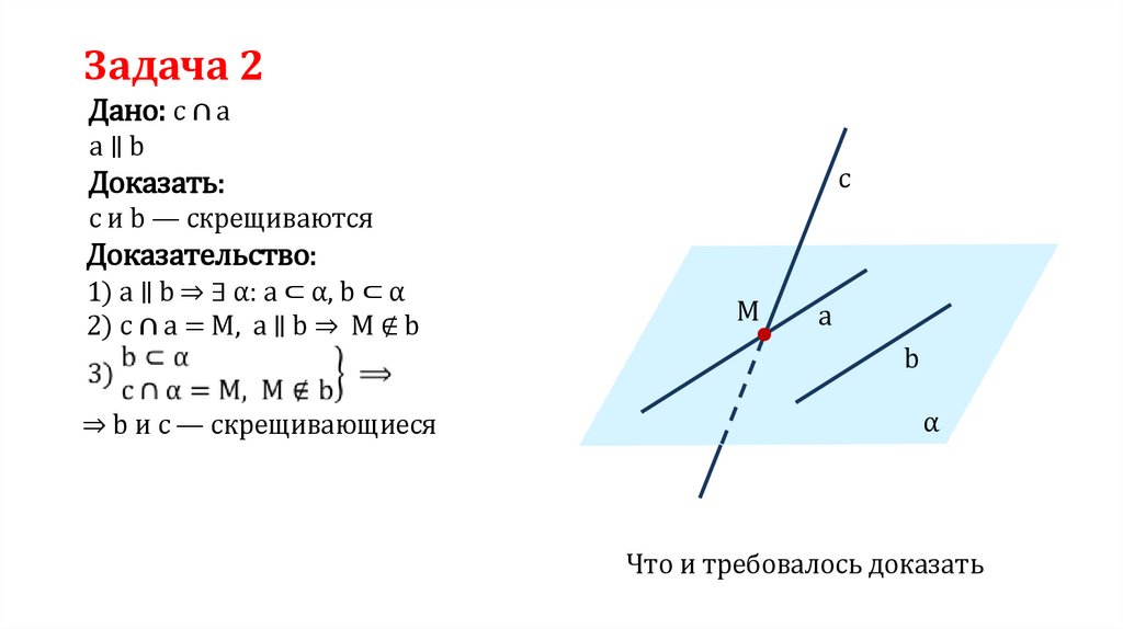 2) c ∩ a = M, a ∥ b ⇒ M ∉ b