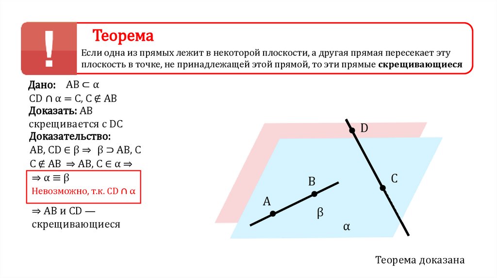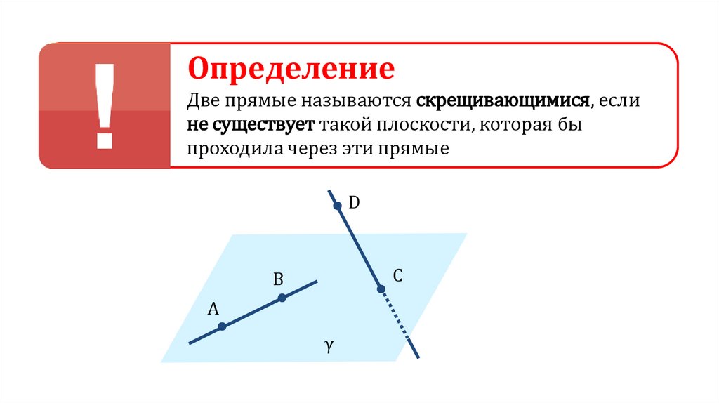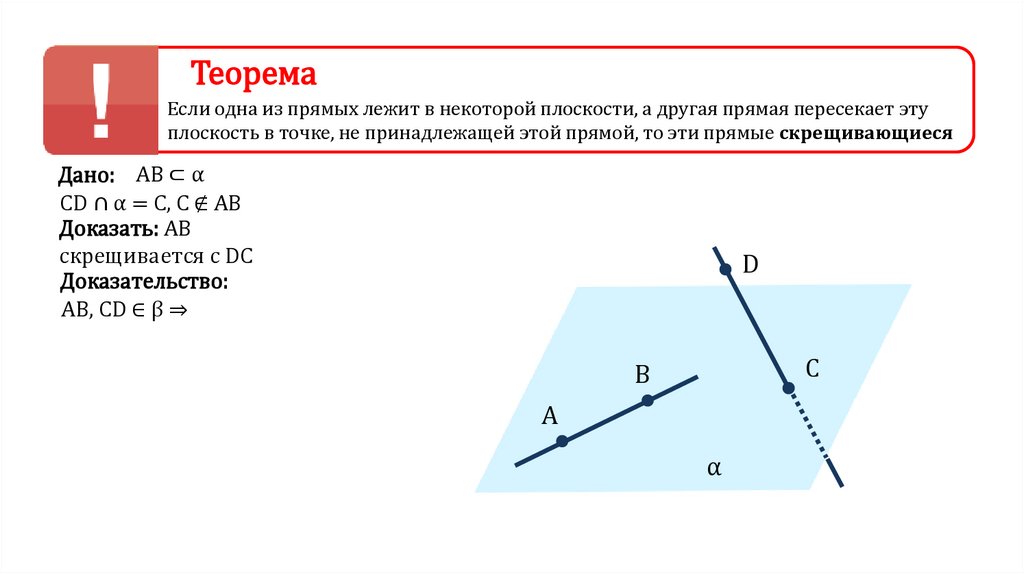плоскость в точке, не принадлежащей этой прямой, то эти прямые скрещивающиеся