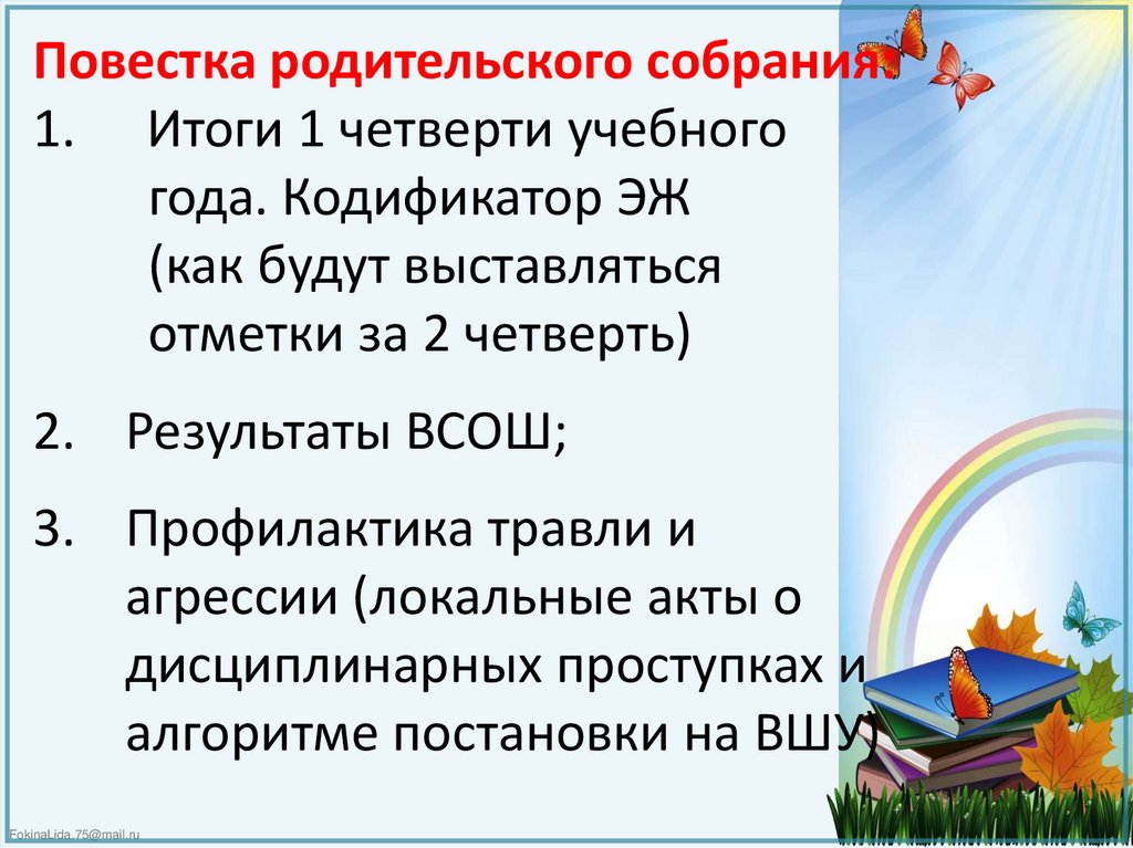 Повестка родительского собрания:1. Итоги 1 четверти учебного