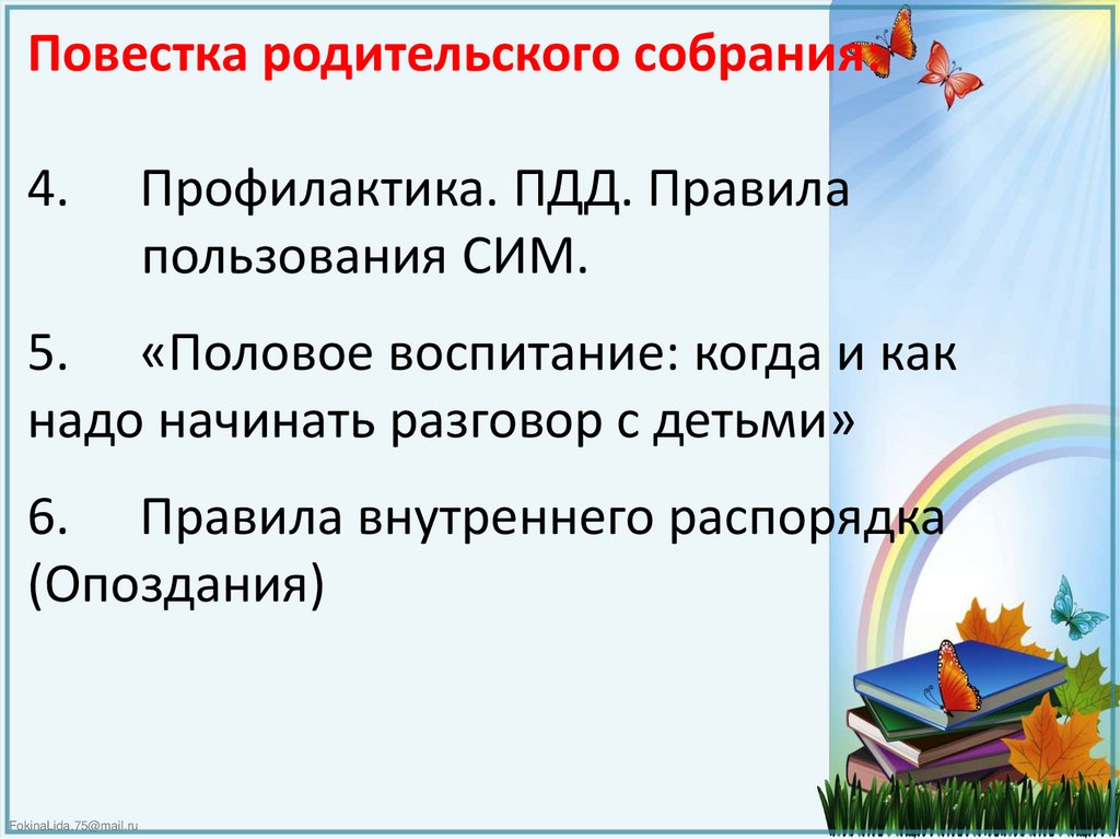 Повестка родительского собрания:4.