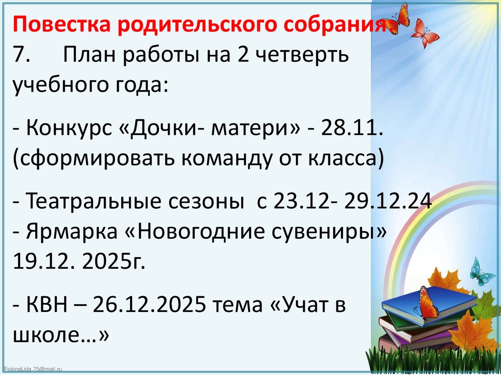 Повестка родительского собрания:7. План работы на 2 четверть