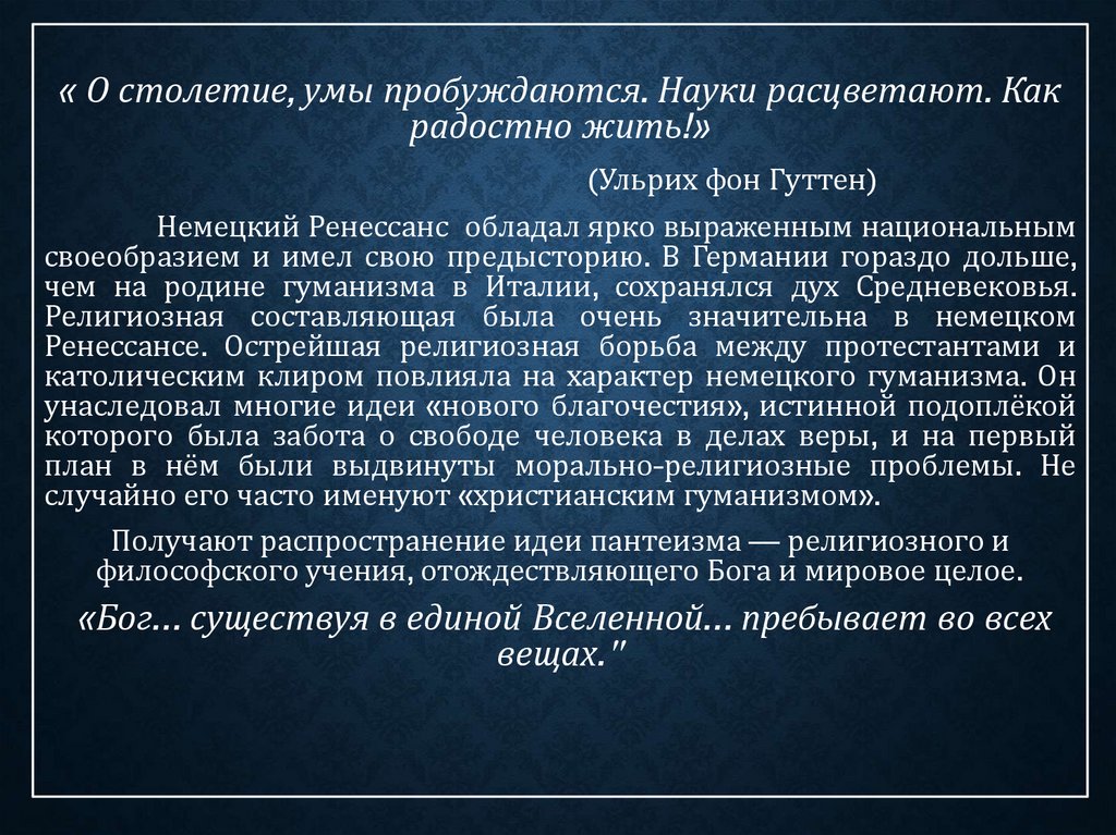 католическим клиром повлияла на характер немецкого гуманизма. Он