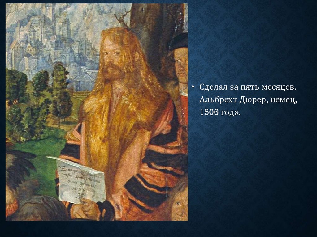 • Сделал за пять месяцев.Альбрехт Дюрер, немец,