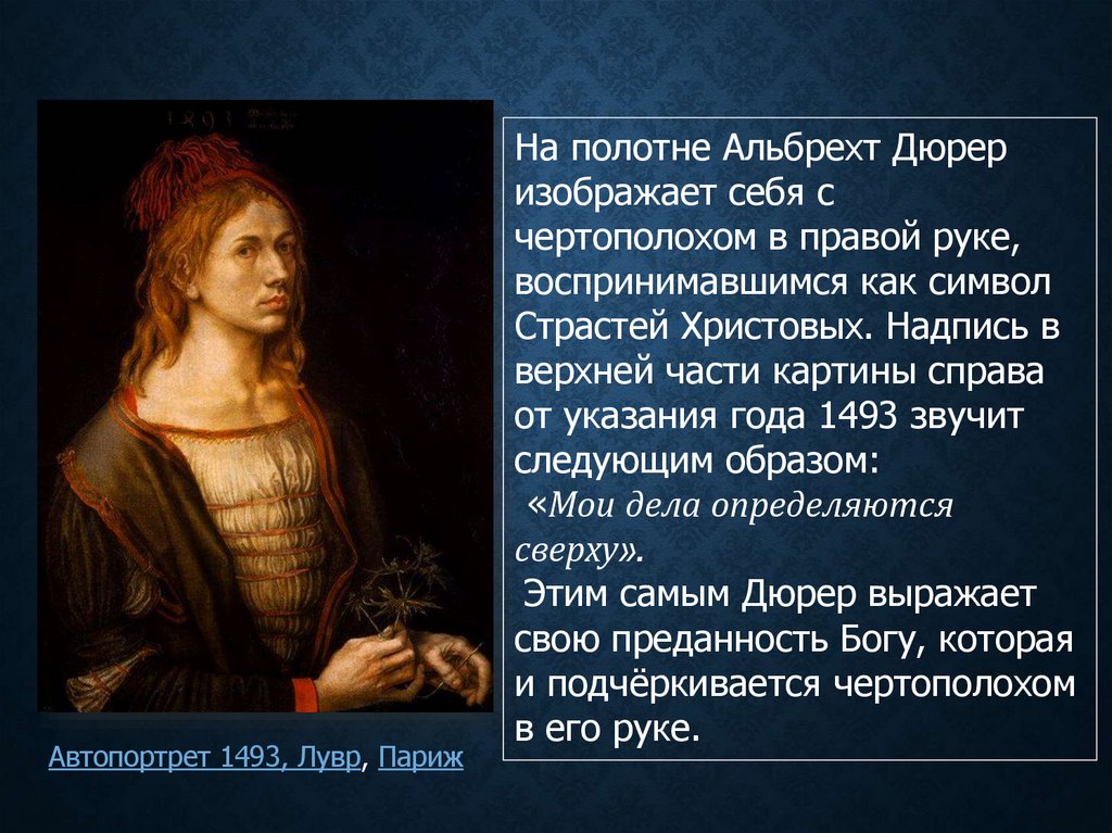 Автопортрет 1493, Лувр, ПарижНа полотне Альбрехт Дюрер