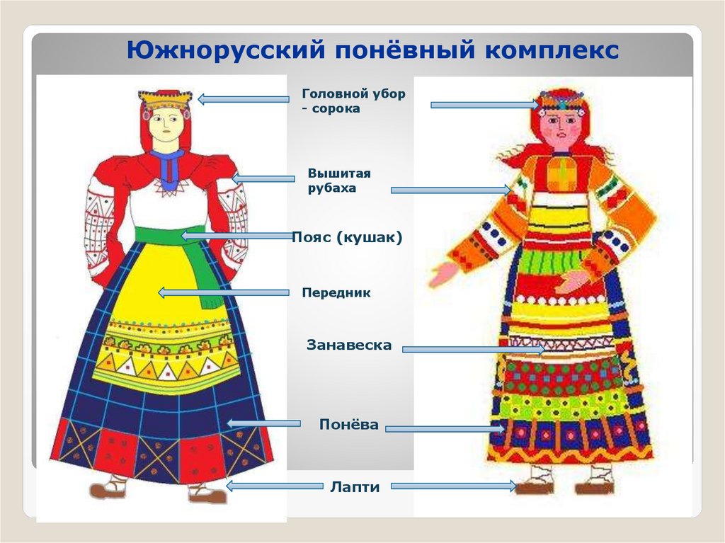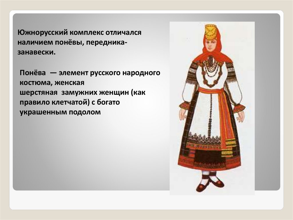 Южнорусский комплекс отличалсяналичием понёвы, передниказанавески.