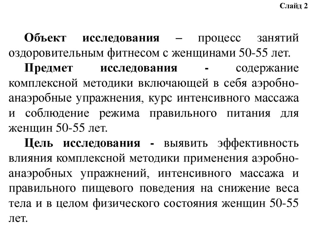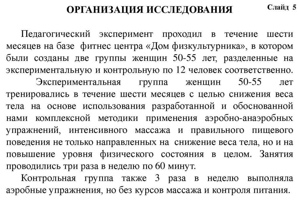 Методика экспериментальных занятий содержит такие комплексы аэробноанаэробных упражнений, которые позволили эффективно снизить избыточную массу