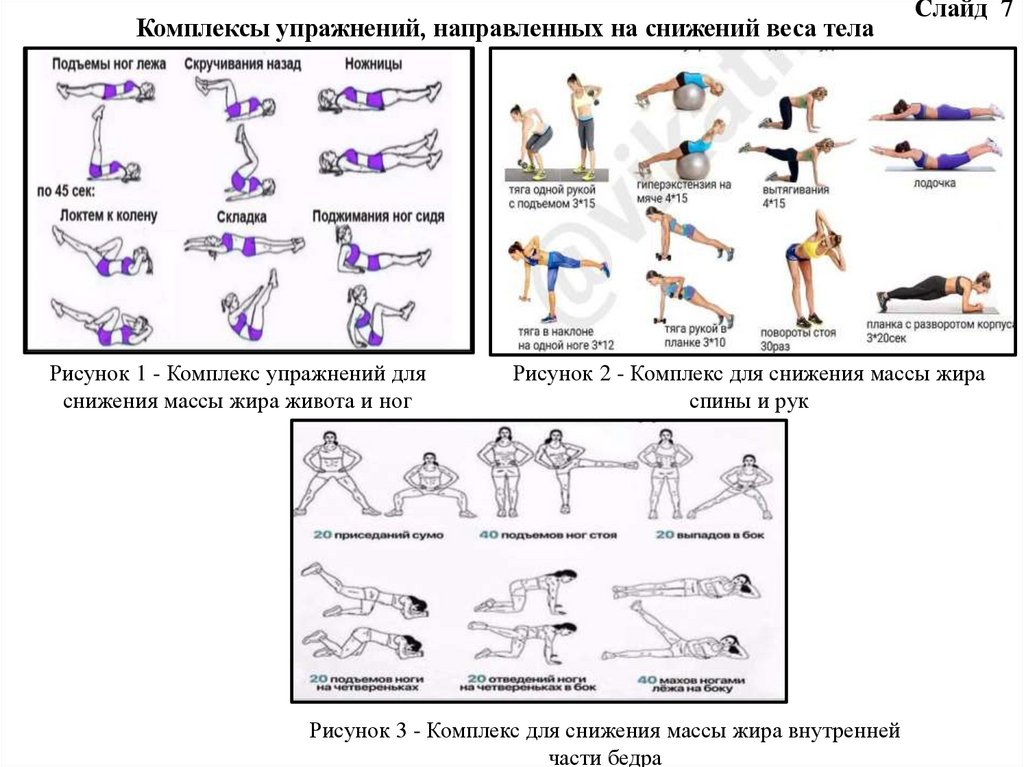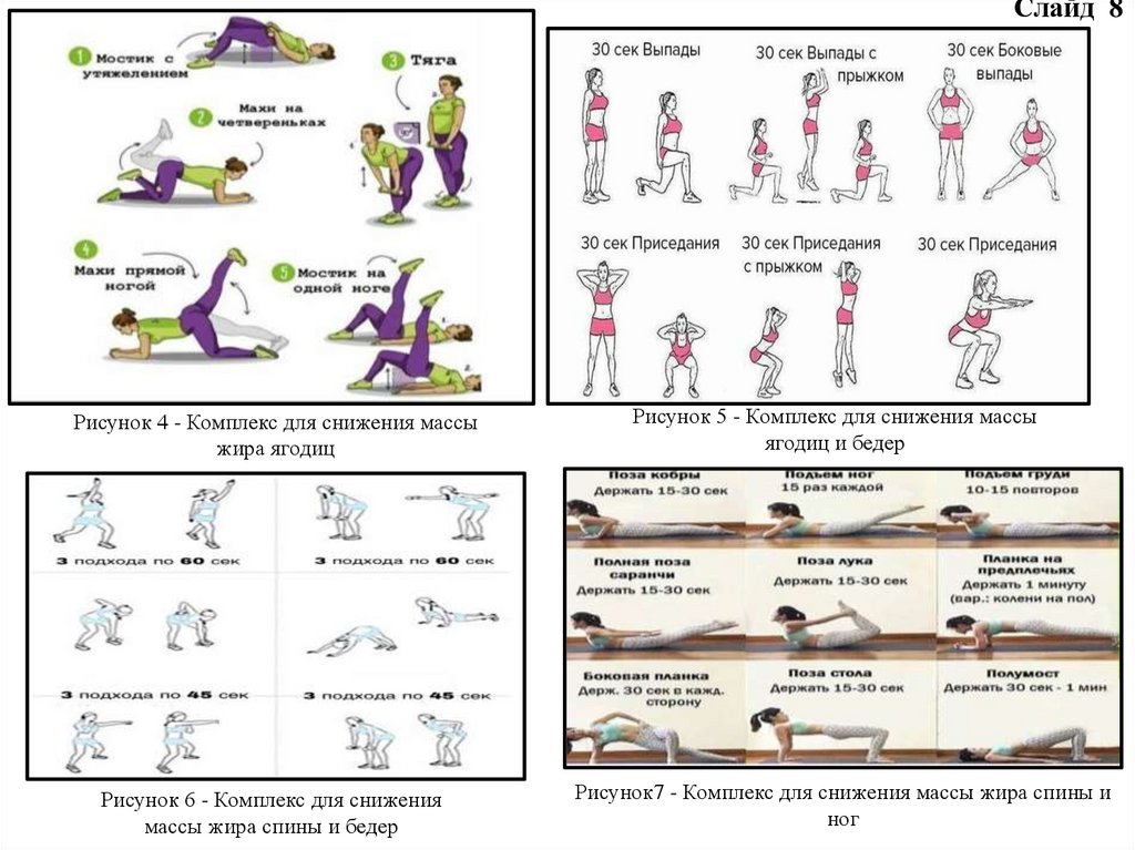 рисунок 1 - комплекс упражнений для снижения массы жира живота и ног,