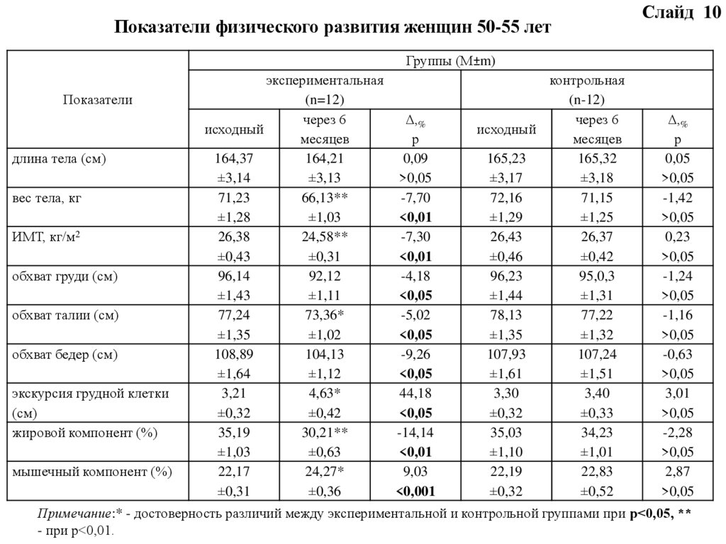 ВЕСА ТЕЛА У ЖЕНЩИН 50-55 ЛЕТ