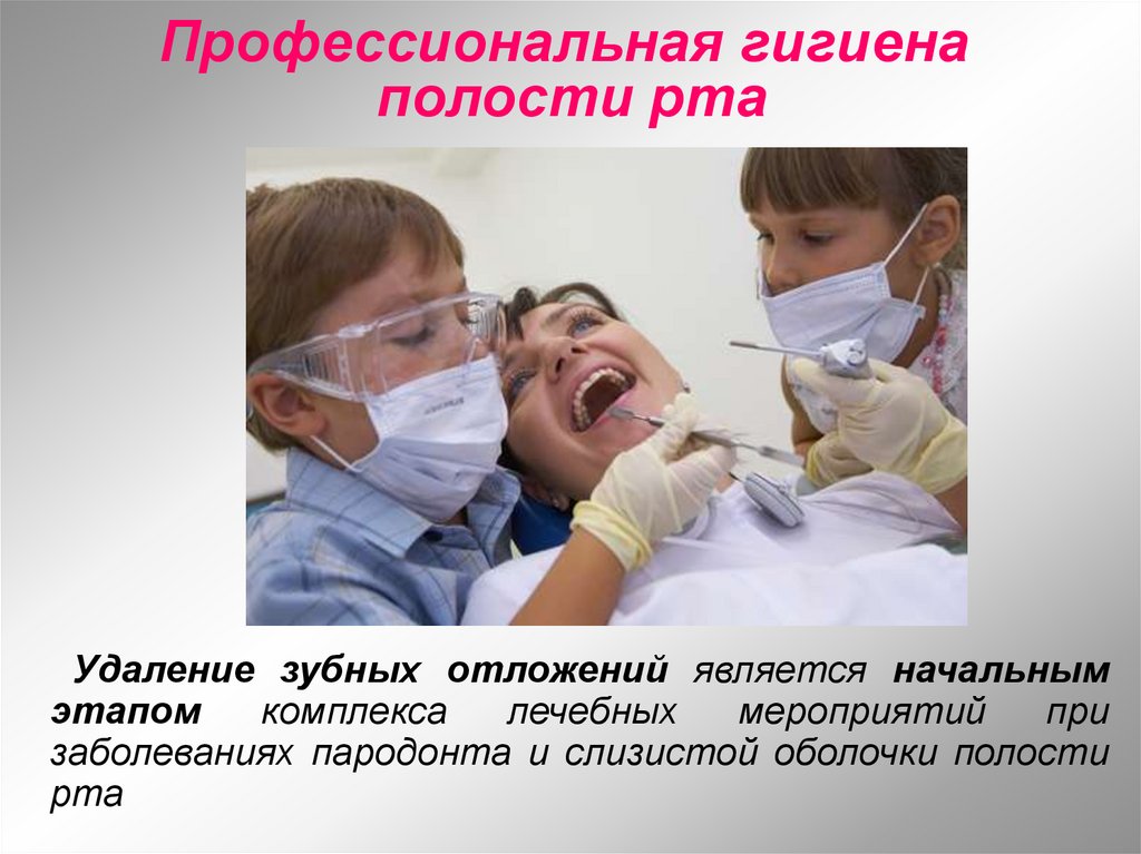 Профессиональной гигиеной обеспечивается :• 1. Удаление мягких и минерализованных зубных отложений с