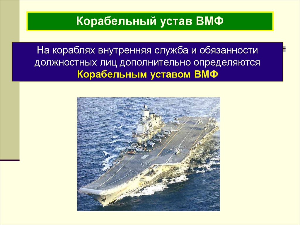 Корабельный устав ВМФНа кораблях внутренняя служба и обязанности