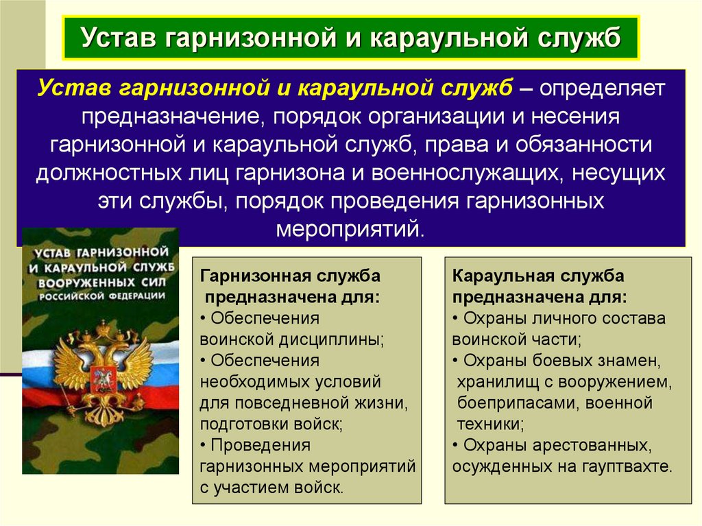 Устав гарнизонной и караульной службУстав гарнизонной и караульной служб – определяет