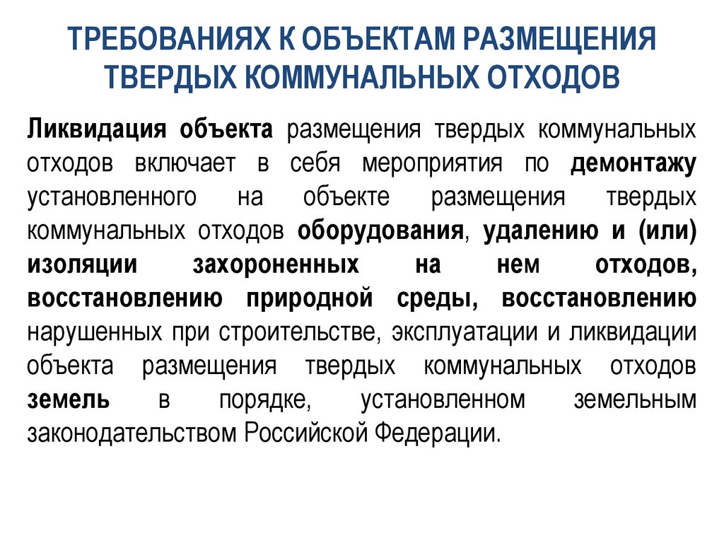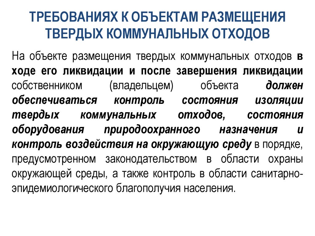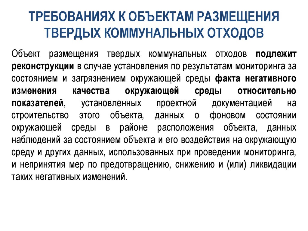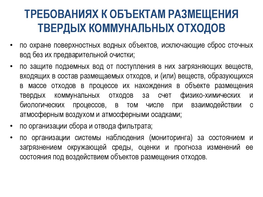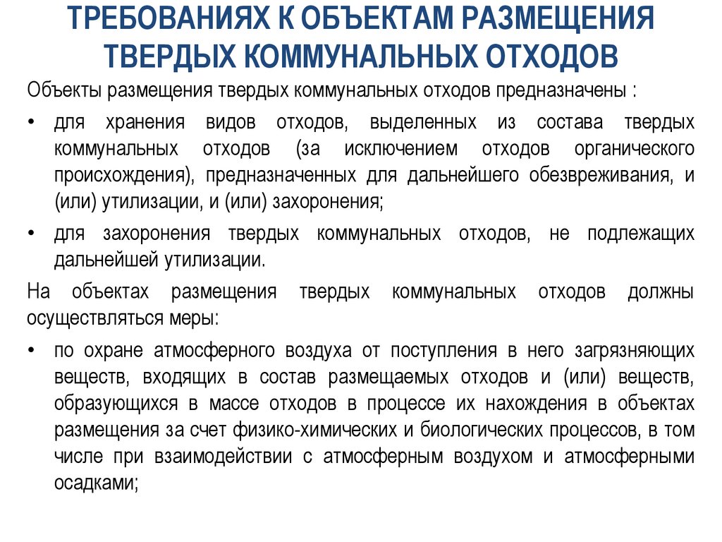 ТРЕБОВАНИЯХ К ОБЪЕКТАМ РАЗМЕЩЕНИЯТВЕРДЫХ КОММУНАЛЬНЫХ ОТХОДОВ
