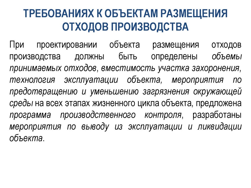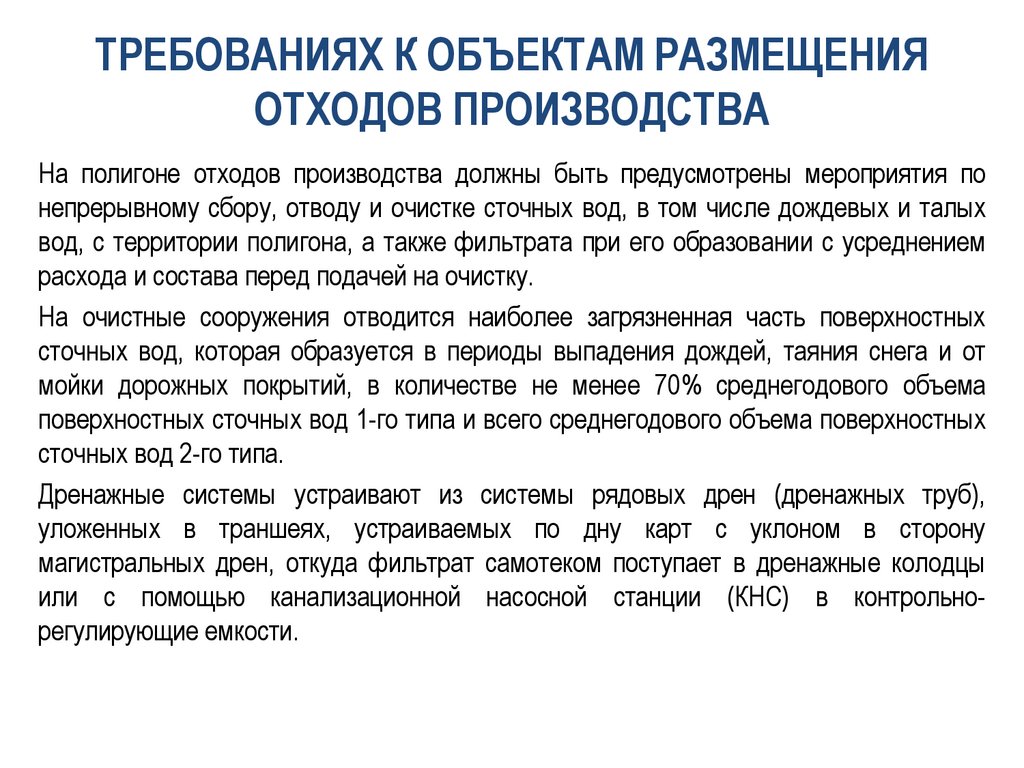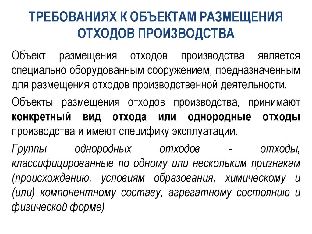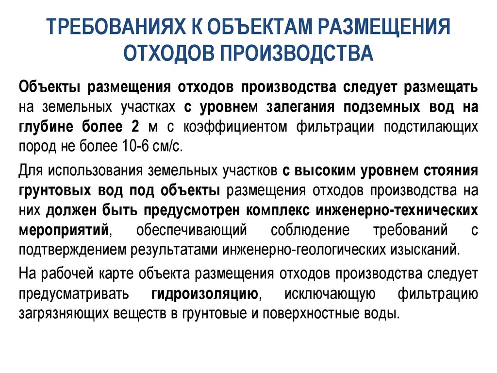 ТРЕБОВАНИЯ К ОБЪЕКТАМРАЗМЕЩЕНИЯ ОТХОДОВ