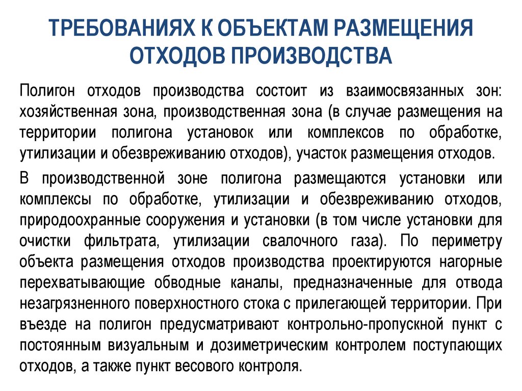 На полигоне отходов производства должны быть предусмотрены мероприятия по