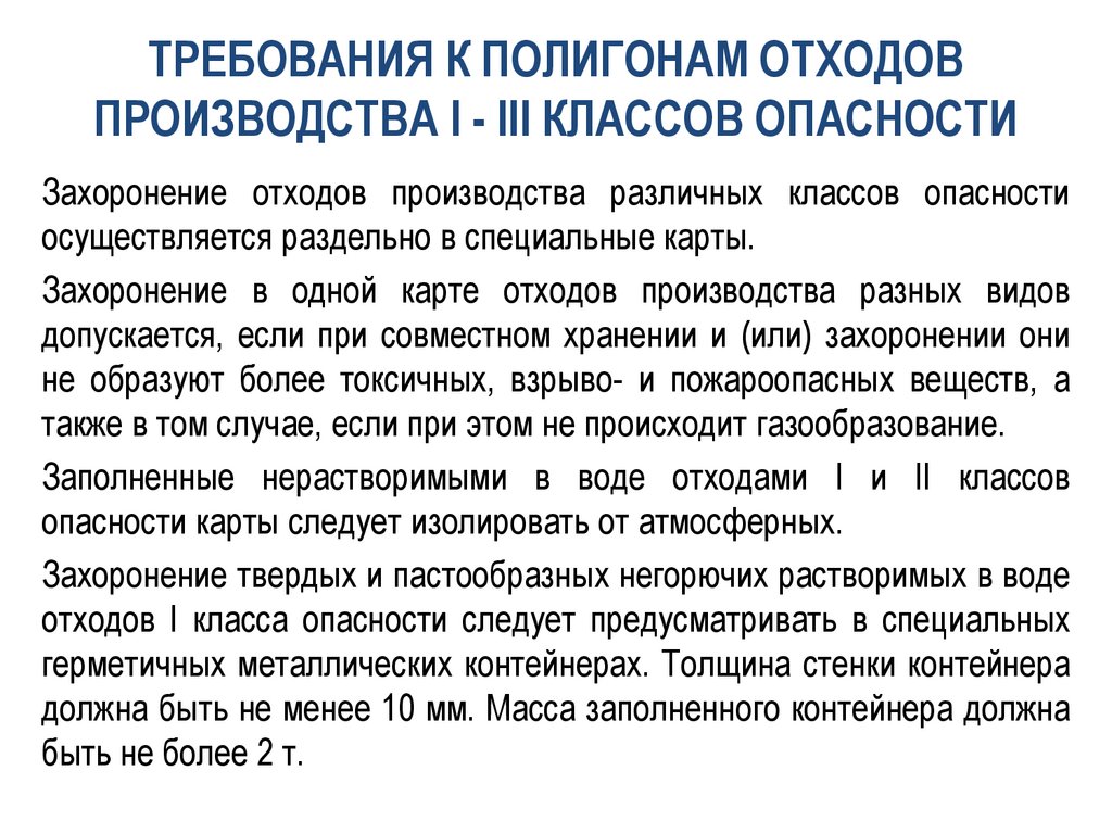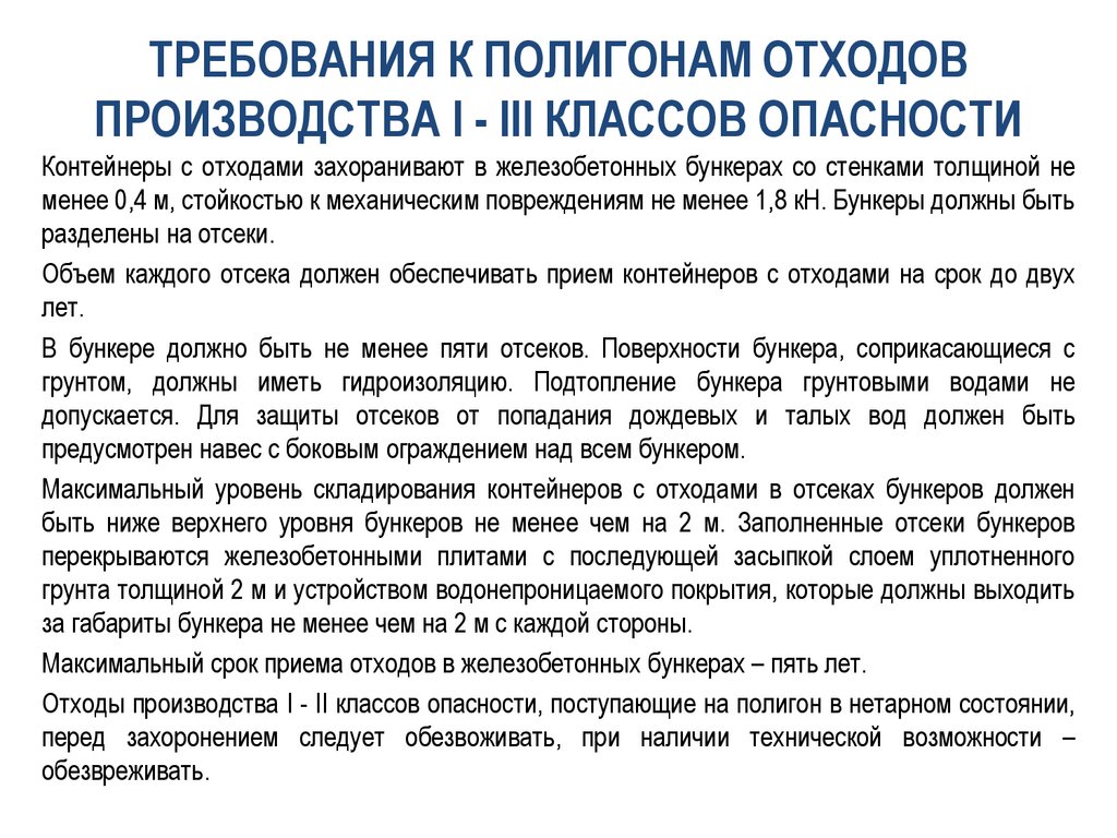 ТРЕБОВАНИЯ К ПОЛИГОНАМ ОТХОДОВПРОИЗВОДСТВА I - III КЛАССОВ ОПАСНОСТИ