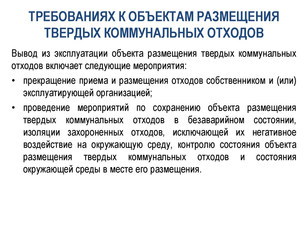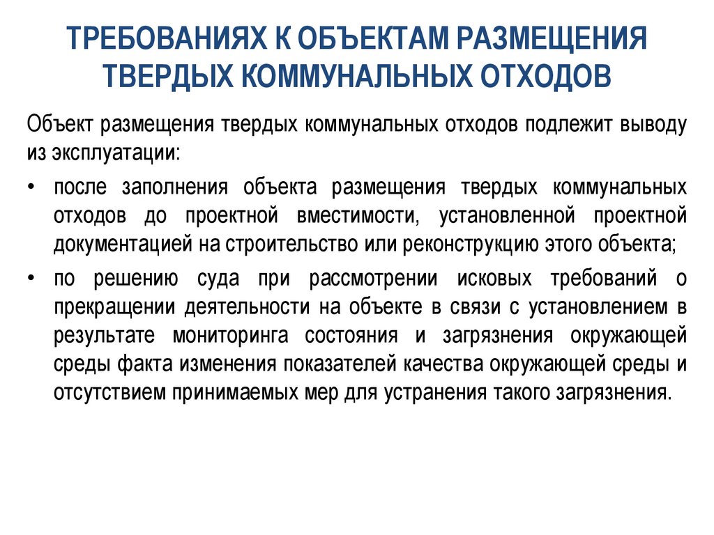 Объект размещения твердых коммунальных отходов подлежит выводу
