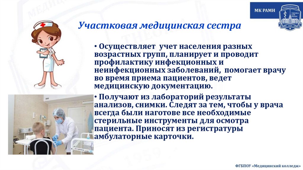 Участковая медицинская сестра• Осуществляет учет населения разных