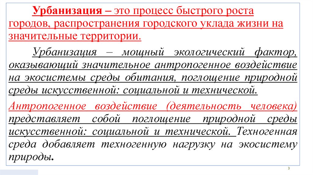 Урбанизация – это процесс быстрого ростагородов, распространения городского уклада жизни на